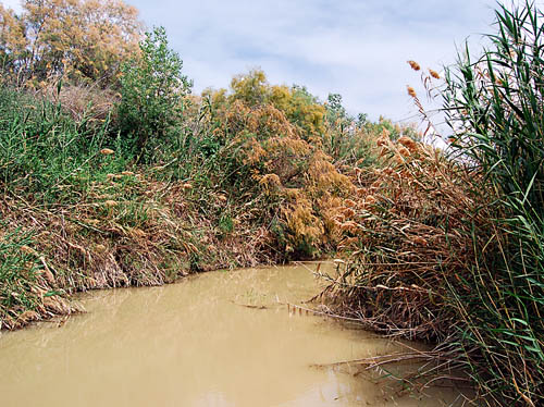 Photographs of the Jordan south of the Sea of Galilee have been difficult to make since 1967 because the river has served, more or less, as the boundary between Israel (or the occupied West Bank) and Jordan. This photograph was made at the site across from Jericho that may be identified as “Bethany beyond the Jordan” (John 1:28), where John the Baptist baptized at first (John 10:40).