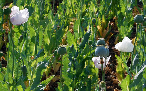 Speaking of poppies. In Turkey, another type of poppy is legally cultivated. On the outskirts of Yalvac (near Pisidian Antioch of Acts 14), I have seen cultivated fields of white poppies along the road. Under U. S. pressure, Turkey outlawed the growing of poppies in 1971. By 1974 they were allowing them to be grown under strict government control. Government factories convert the dried stems into poppy-straw concentrate (PSC) and then into morphine and codeine (See “The Poppy,” National Geographic, Feb., 1985, pp. 143-189). Here is a photo I made last year. I trust that I will not be charged with possession of a poppy photo!
