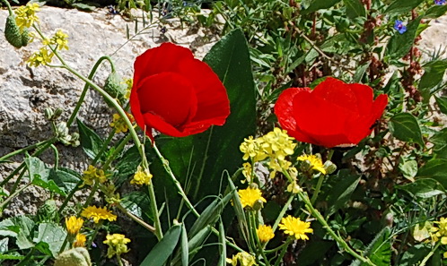In the past three trips to Israel, with good digital equipment, I have not seen many poppies growing. In past visits, earlier in the year, we have seen entire fields colored with them. Here is a photo of some poppies among the ruins at Jerash in Jordan.