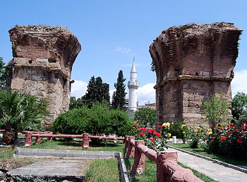 Our photo shows the ruins of the Byzantine church. Local tradition says this building served as a cathedral dedicated to St. John the Theologian. In Turkey the minaret is positioned to be in almost every tourist photo.