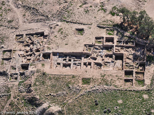 Last December I made some aerial photographs above Tell es-Safi. Here is a photo showing a view to the southeast. This ancient Philistine city is located at the point where the coastal plain (to the west) meets the Shephelah (to the east). You should be able to make out the line of the Elah brook along the bottom and right of the photo.