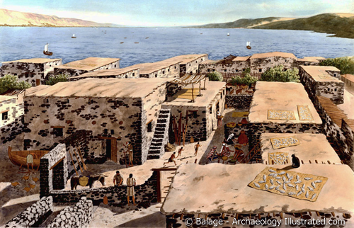 On the West side of the town in Trench I, the first town wall was associated with a large stone-built tower situated against its inner side, 8.5 meters in diameter [almost 28 feet] at the base with a surviving height of 7.75 meters [about 25½ feet]. The construction of the tower was solid except in the center, which had a staircase providing access to the top from the interior of the town. — The Anchor Bible Dictionary 3:727