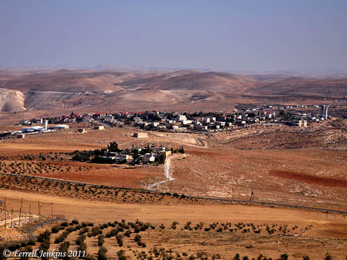 The photo below was made from the Herodium. The view is south toward the modern Arab town of Tekoah (Tekoa). The biblical tel of Tekoah is visible in the distance beyond the city, a little to the left of center.