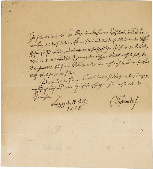 Tim, I think this is letter has nothing to do with the Codex Sinaiticus. The guys at Evangelical Textual Criticism indicate that it is a letter that Tischendorf wrote saying that he would be unavailable to teach because of a trip to the east. You can run the comments there through Google translator. http://evangelicaltextualcriticism.blogspot.com/2008/12/tischendorf-on-leave-of-absence.html