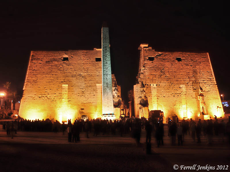 Luxor Temple facade at night. Photo by Ferrell Jenkins.