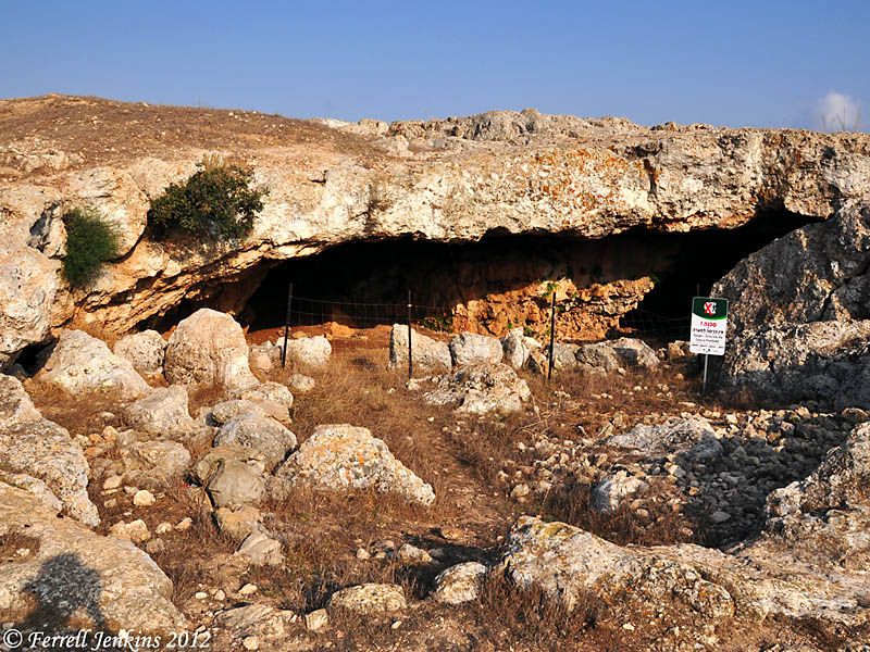 Yodfat differs from the typical tel (archaeological mound). It is mostly a rock, with few remains on the surface. The site is filled with numerous caves in which the Jewish soldiers hid, and cisterns that provided water for them. The photo below shows the entrance to one of the caves on the south side of the site.