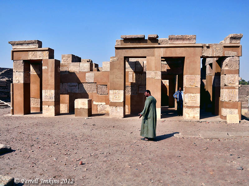 The ruins shown below belong to the Temple of Satet from Egyptian Dynasty XVIII. This was the time of Thutmose III (roughly around 1500 B.C.), during what is designated the New Kingdom Period.