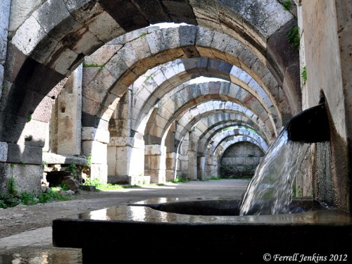 This photo shows the great arches in the lower level of the three story civic agora dating to the second century A.D., and a powerful spring of water that was discovered only a few years ago.