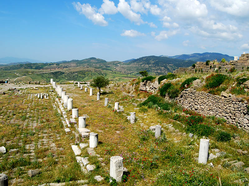 At Pergamum we saw the partially reconstructed Temple of the Emperor Trajan (A.D. 98-117), the area where the famous library of the ancient world stood, the foundation of the temple of Athena, the theater, and the site of the Zeus Altar. The altar has now been reconstructed in the Pergamum Museum in Berlin.