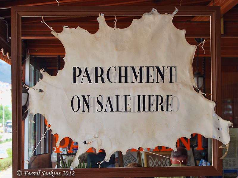 When Pergamum could no longer get papyrus sheets from Egypt they developed the writing material called parchment. There are a few shops in the city today (modern Bergama) selling parchment made from goat skin.