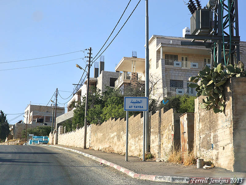 What is the name of Ephraim today? Ephraim is often identified with a Christian Arab town in the West Bank Palestinian territory known as At-Taybe. On Highway 60 a sign points to Taybeh, the spelling I am using. Carta’s Israel Touring Atlas spells it Et-Tayibeh.