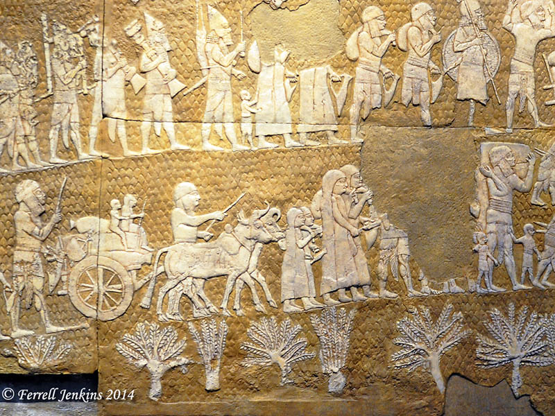 Sennacherib’s relief showing the women of Lachish going into captivity. Replica in Israel Museum. Photo by Ferrell Jenkins.