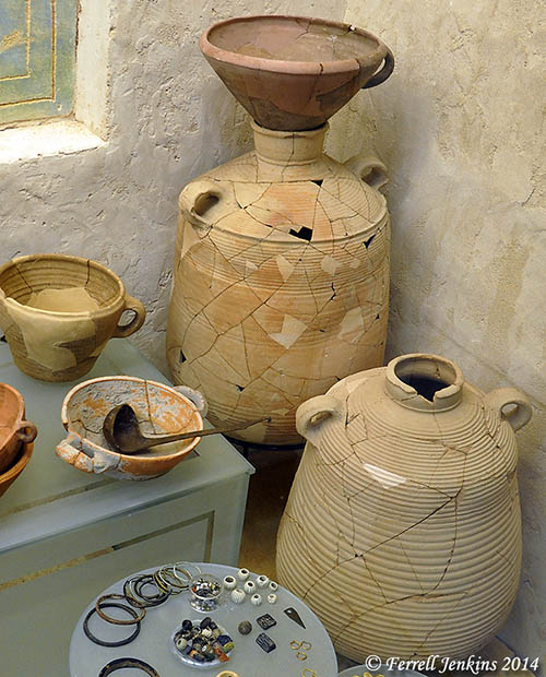If enough large pieces of a pot or jar are found they may be restored. This can be seen in the photo below that was taken at the En-Dor archaeological museum.