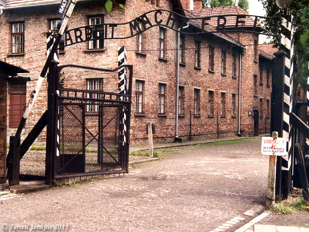 The entrance to Auschwitz. Photo by Ferrell Jenkins, 1991.