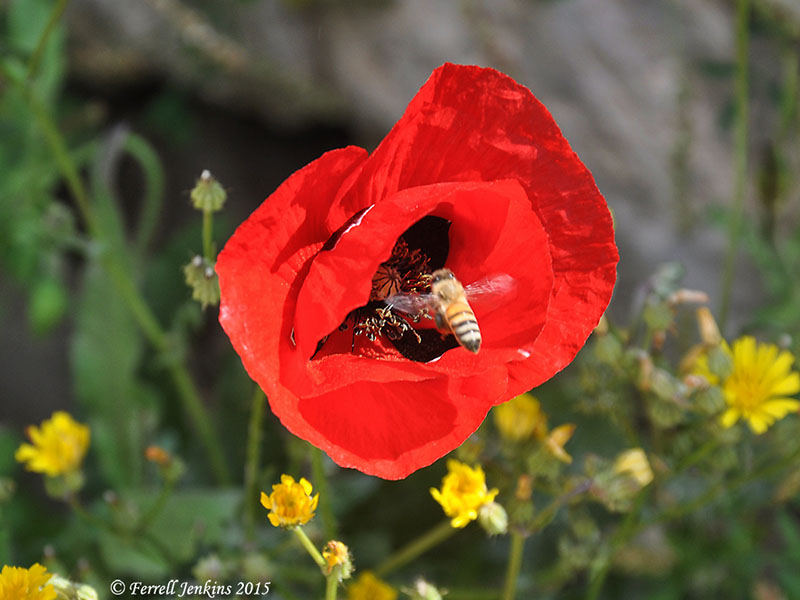 A poppy and a bee at the Pool of Bethesda, Jerusalem. Photo by Ferrell Jenkins.