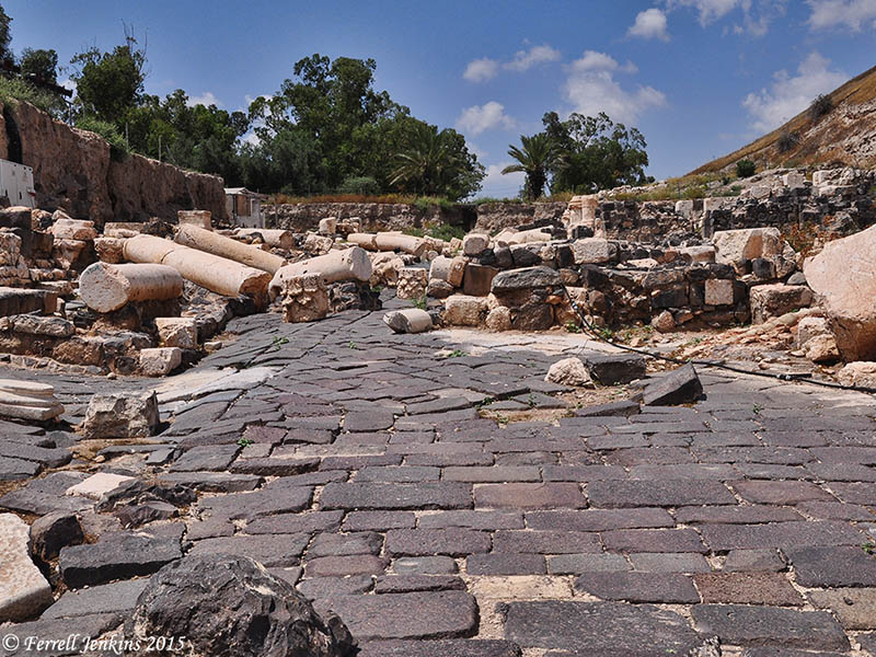 The main street of the Byzantine city. The tel of ancient Bethshan is visible at the end of the street. Photo by Ferrell Jenkins.