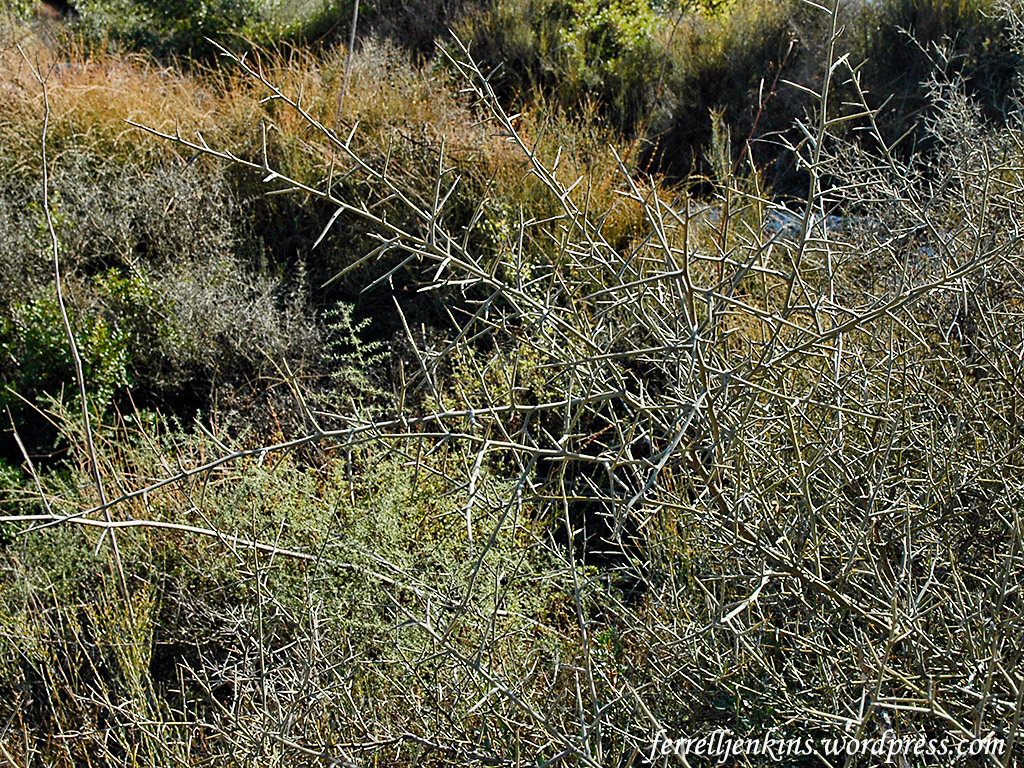 Here is a drawing from UBS’s 1000 Bible Images. I have observed several thorn plants with long spikes such as these.