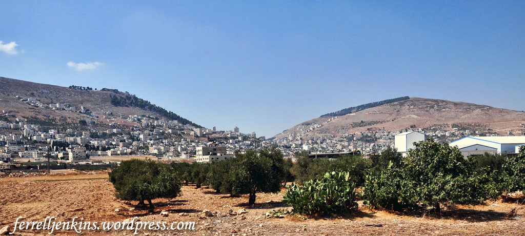 View west to the Shechem valley between Mount Gerizim (left) and Mount Ebal (right). Photo by Ferrell Jenkins.