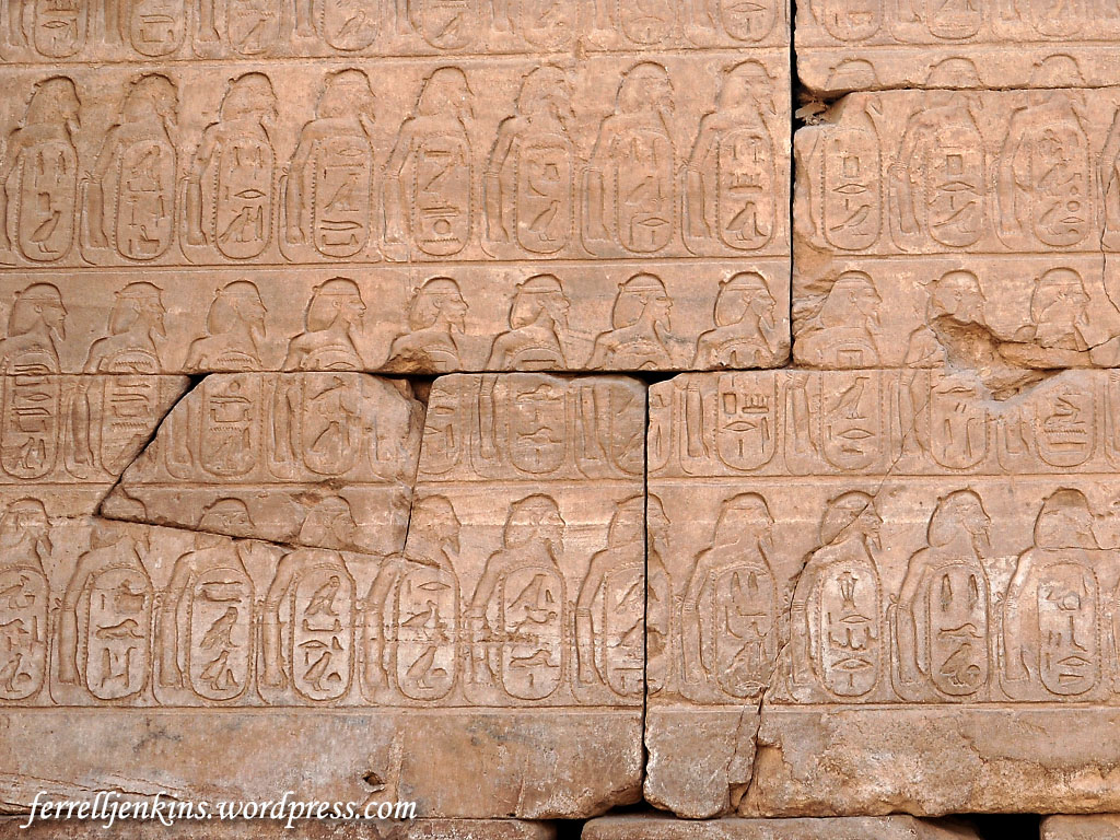 Thutmose made a military excursion into Canaan and left a record of it on the walls of the Karnak Temple. Our photo shows a few of the bound rulers of various cities. I don’t have a translation of the cartouches and do not know if Bal’ama is shown in this photo, but it is included somewhere on the walls of Karnak.