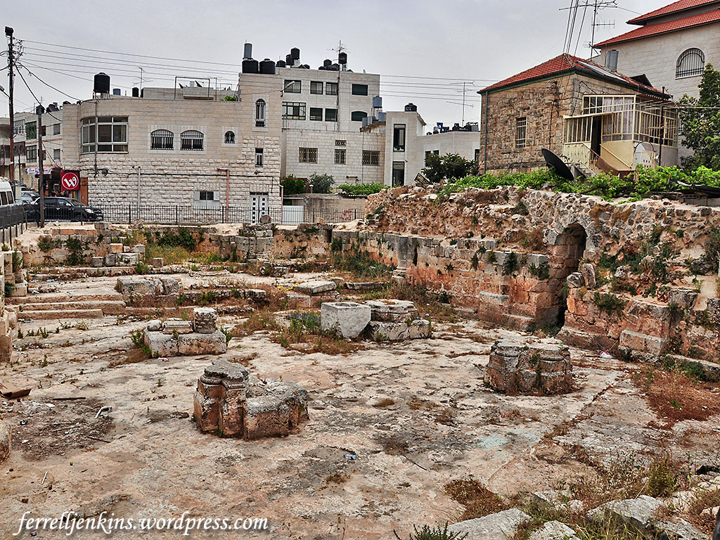 View of the ruins of the church at El Bireh. The apse is visible in the foreground. Photo by Ferrell Jenkins.