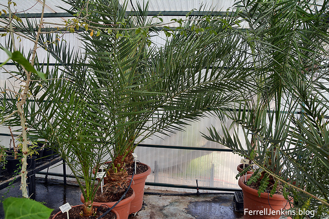 In the hothouse at Ketura we saw these growing young palms. Photo by Ferrell Jenkins.