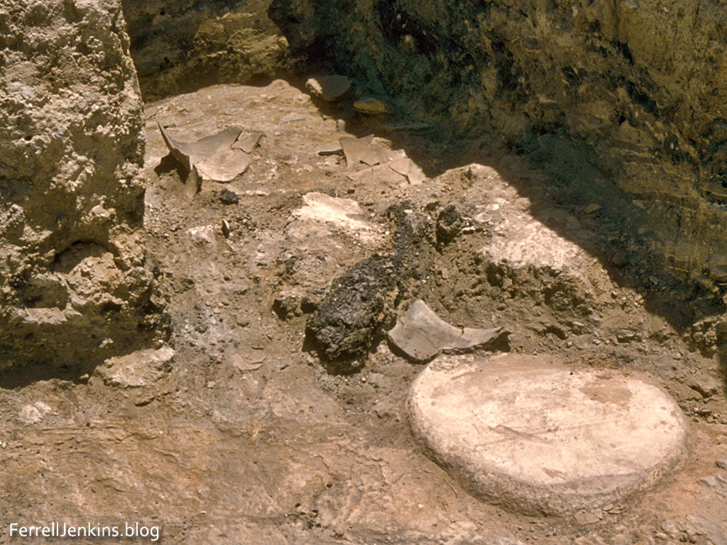 Charred beam made of Cedar of Lebanon in the Egyptian-period temple at Lachish. Photo by Ferrell Jenkins, 1980.