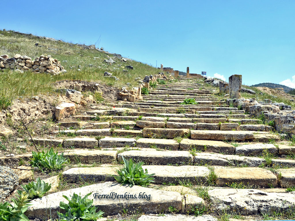 The green hill just above the center of the photo is the ancient site of Dibon. The view to the east shows the modern town of Dhiban, Jordan, in the distance. Photo by Ferrell Jenkins.
