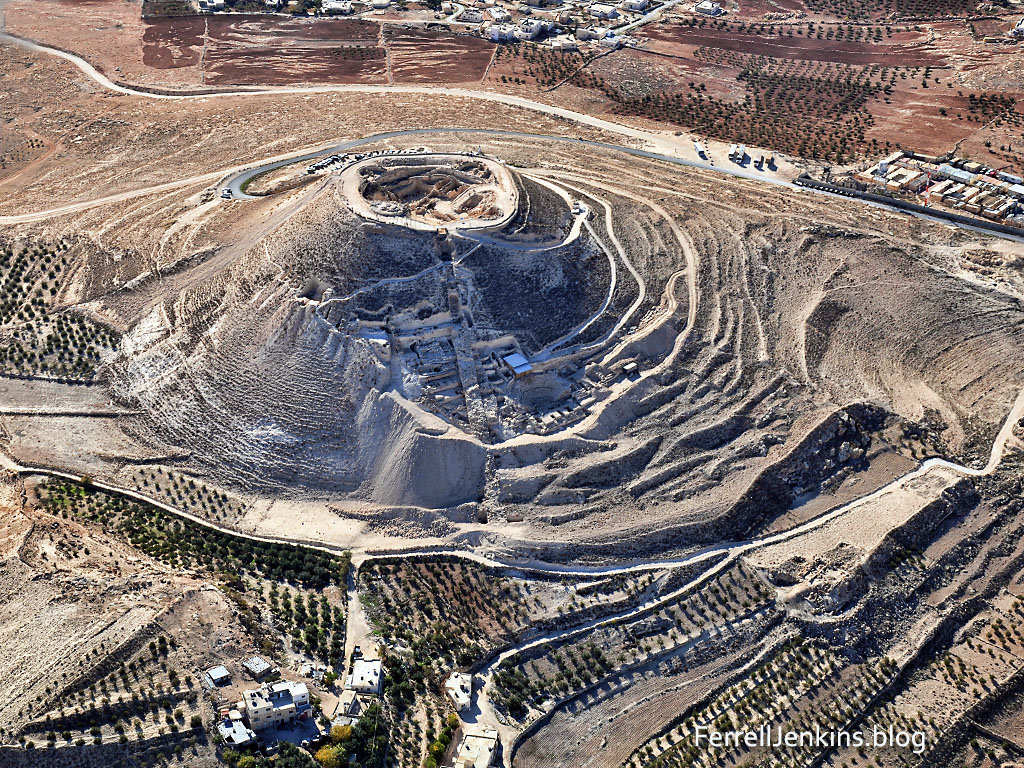 This aerial photo of the Herodium was made in 2009. The ring was found in the garden inside the fortress built by Herod the Great. Photo by Ferrell Jenkins.