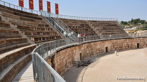 The Amphitheater at Bet Guvrin has been decorated to remind us of the Roman period. Photo by Ferrell Jenkins.