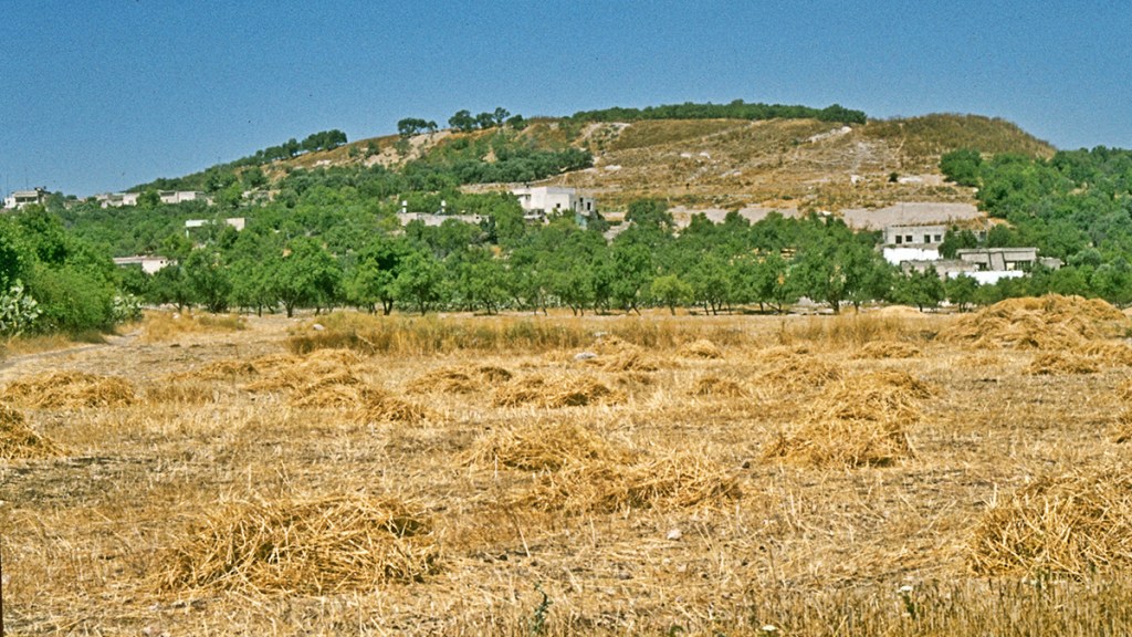 A quiet, fertile valley folded into the Mediterranean hills, clear streams, tall poplars, ancient ruins more than 1,400 years old—a picture of pastoral quiet. (Biblical Archaeology Review, Sept/Oct 1986)