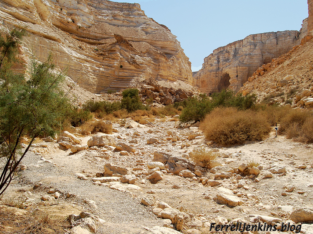 The photo below has been scanned from a slide made in 1982 in the Wadi Farah (or Faria) near the Biblical site of Tirza (now known as Tel Farah North).