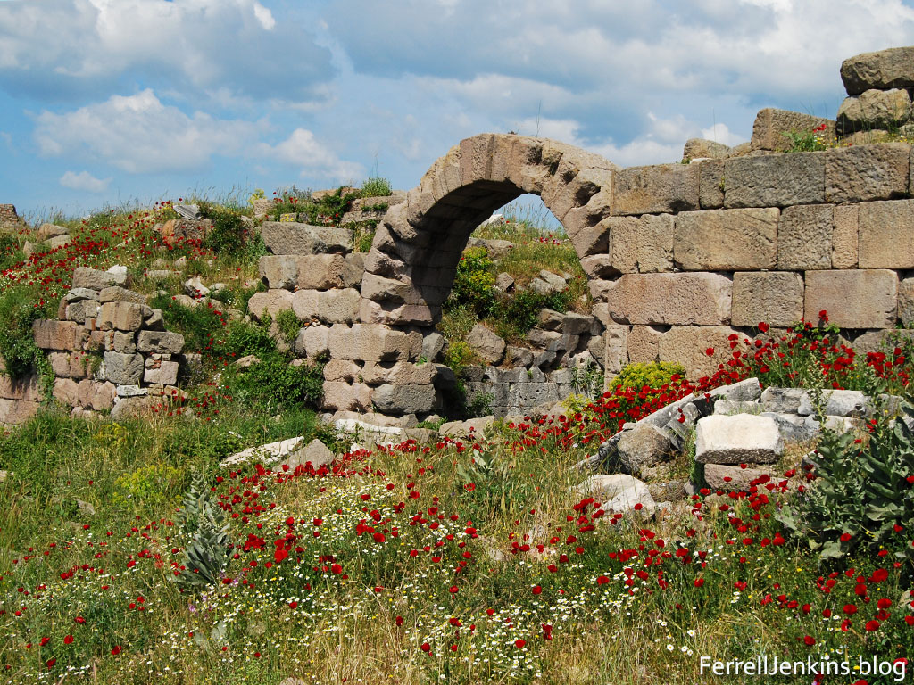 Spring flowers among the ruins at Pergamum, site of one of the seven churches of the book of Revelation (2:12-17). Photo by Ferrell Jenkins.
