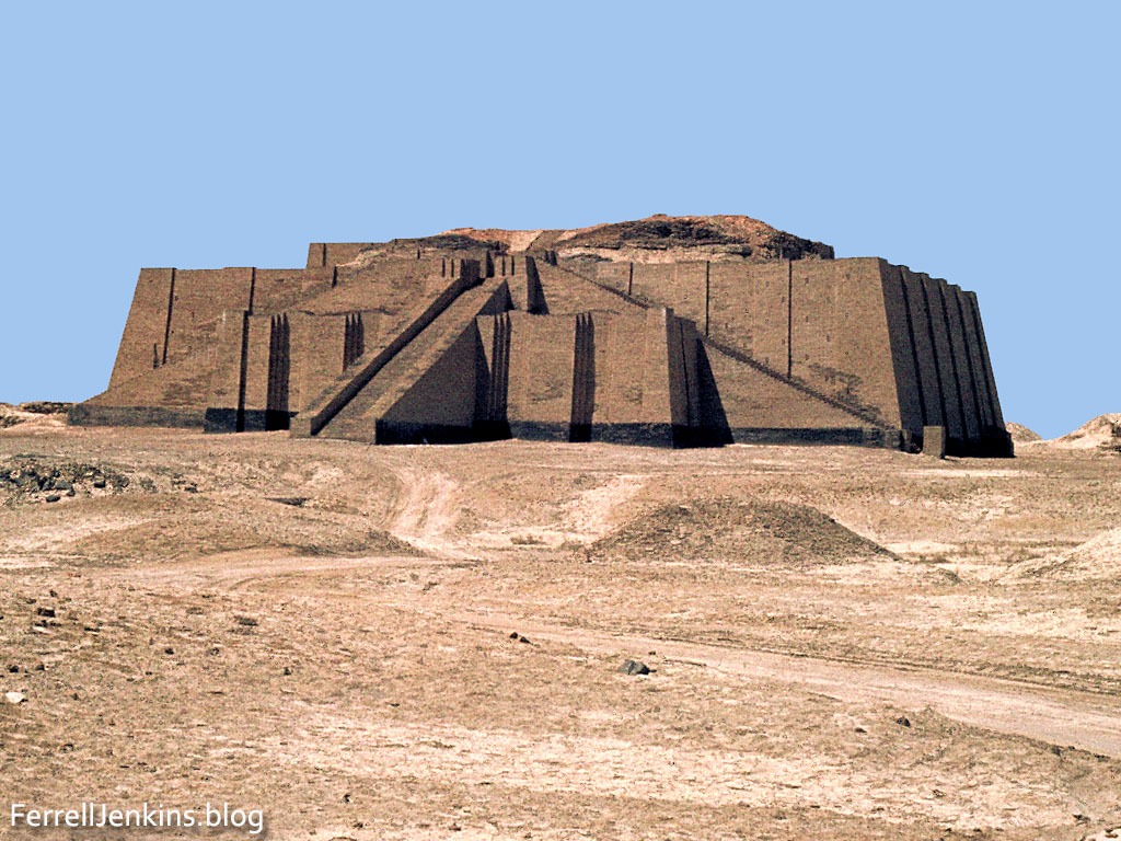 The ziggurat at Ur was 200 feet (63 m.) long, 150 feet (47 m.) wide, and some 70 feet (22 m.) high. The inside was made of unbaked brick; the outside consisted of about 8 feet (2.5 m.) of baked brick set in bitumen. The Stele of Ur-Nammu is a contemporary record of the building of this ziggurat. The tower of Babel was a ziggurat (Gen 11:1–9). (Douglas, J. D., and Merrill Chapin Tenney. New International Bible Dictionary 1987 : 1088. Print.)