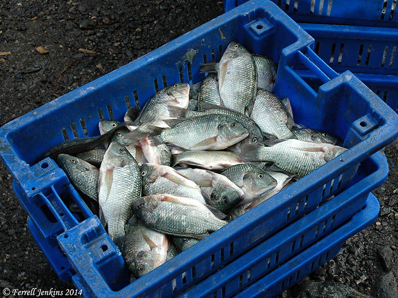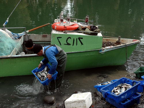 A fisherman unloading his catch early in the morning at a dock at Tiberias, Israel.
